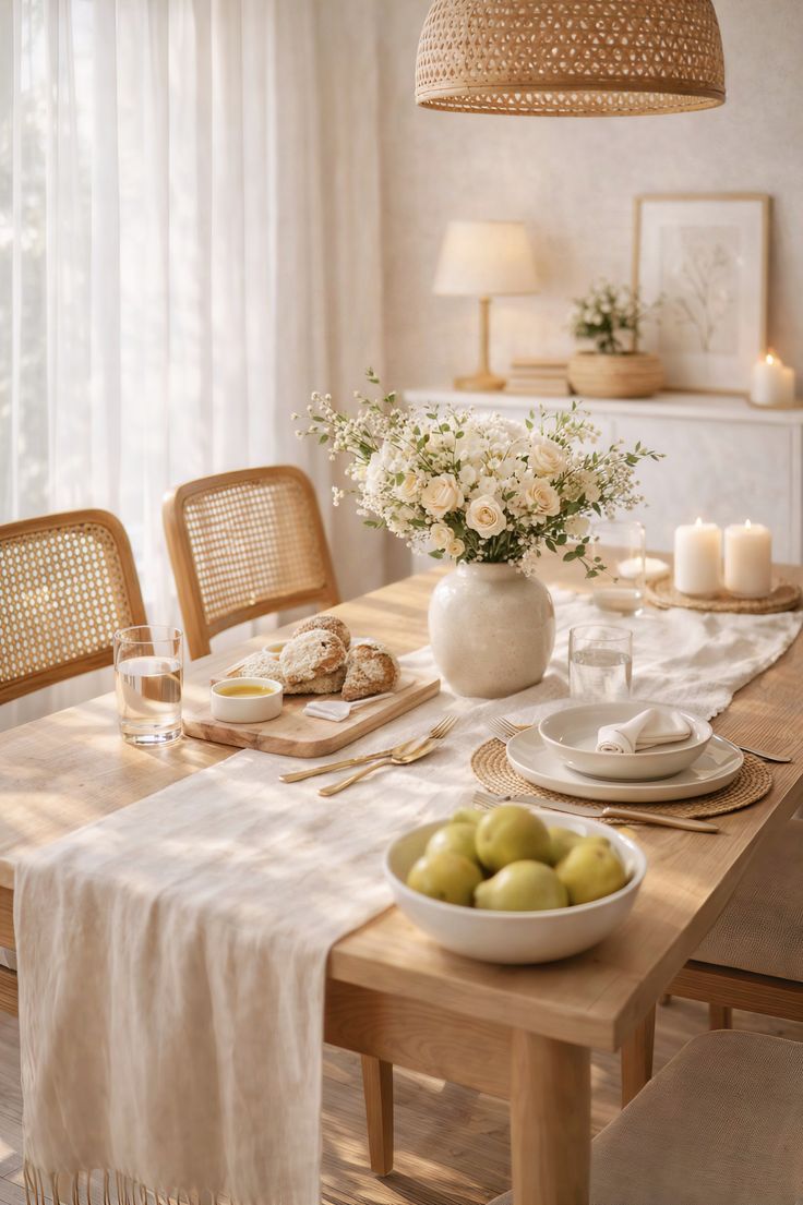 Renk sadece objelerde değil, yüzeylerde de düşünülmeli. Çiçek desenli bir masa örtüsü, pastel tonlu bir seramik, desenli bir servis tabağı… Hepsi birlikte hafif ama katmanlı bir etki yaratır.