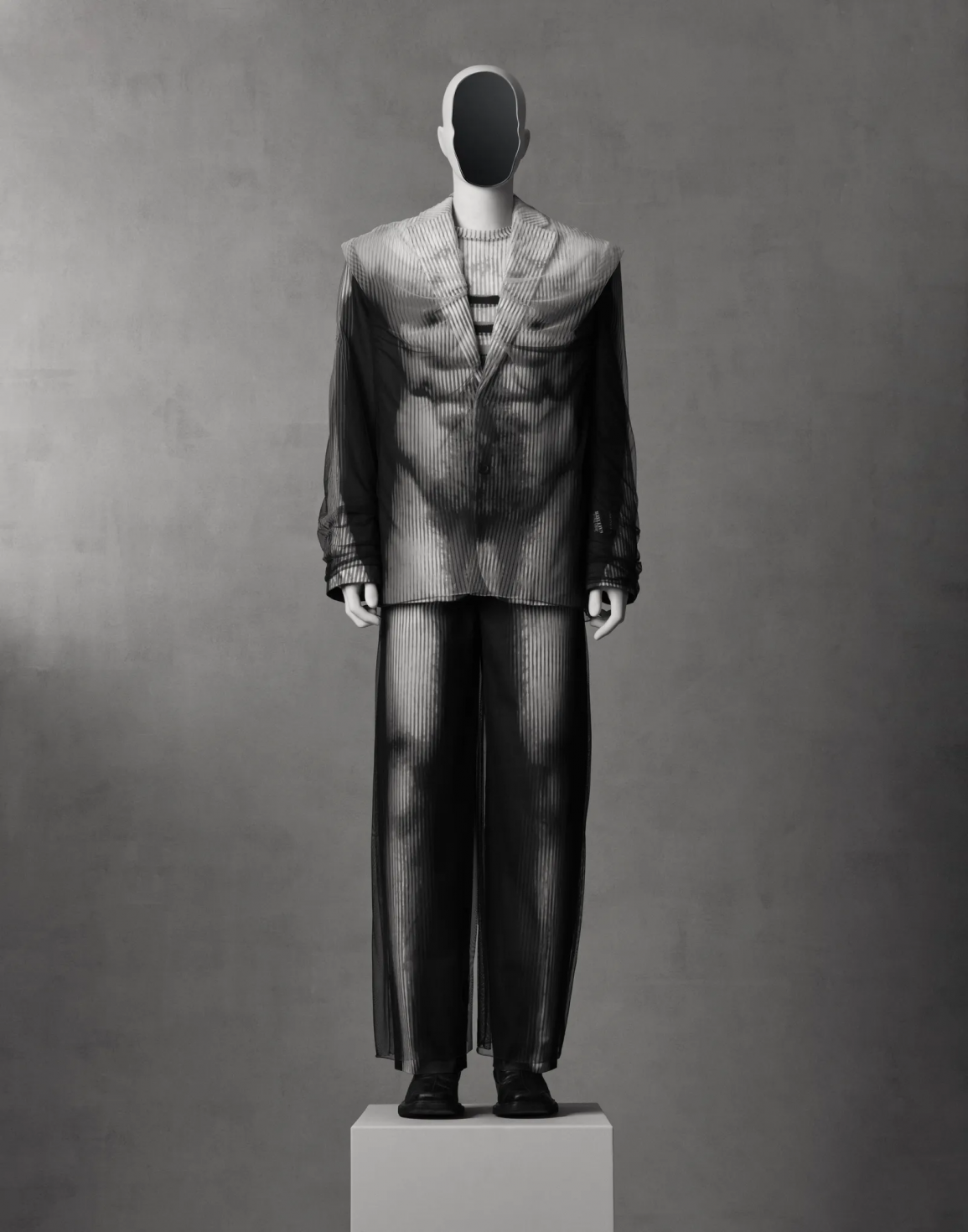 Fotoğraf: Paul Westlake, görsel The Metropolitan Museum of Art’ın izniyle. Takım elbise, Glenn Martens (Belçikalı, d. 1983) tarafından Y/Project (Fransız moda markası, 2010’da kuruldu) için tasarlanmıştır, 2022–23 Sonbahar/Kış koleksiyonu; Y/PROJECT ARCHIVES’in bağışı, 2025 (2025.854.10a–c, f–g).