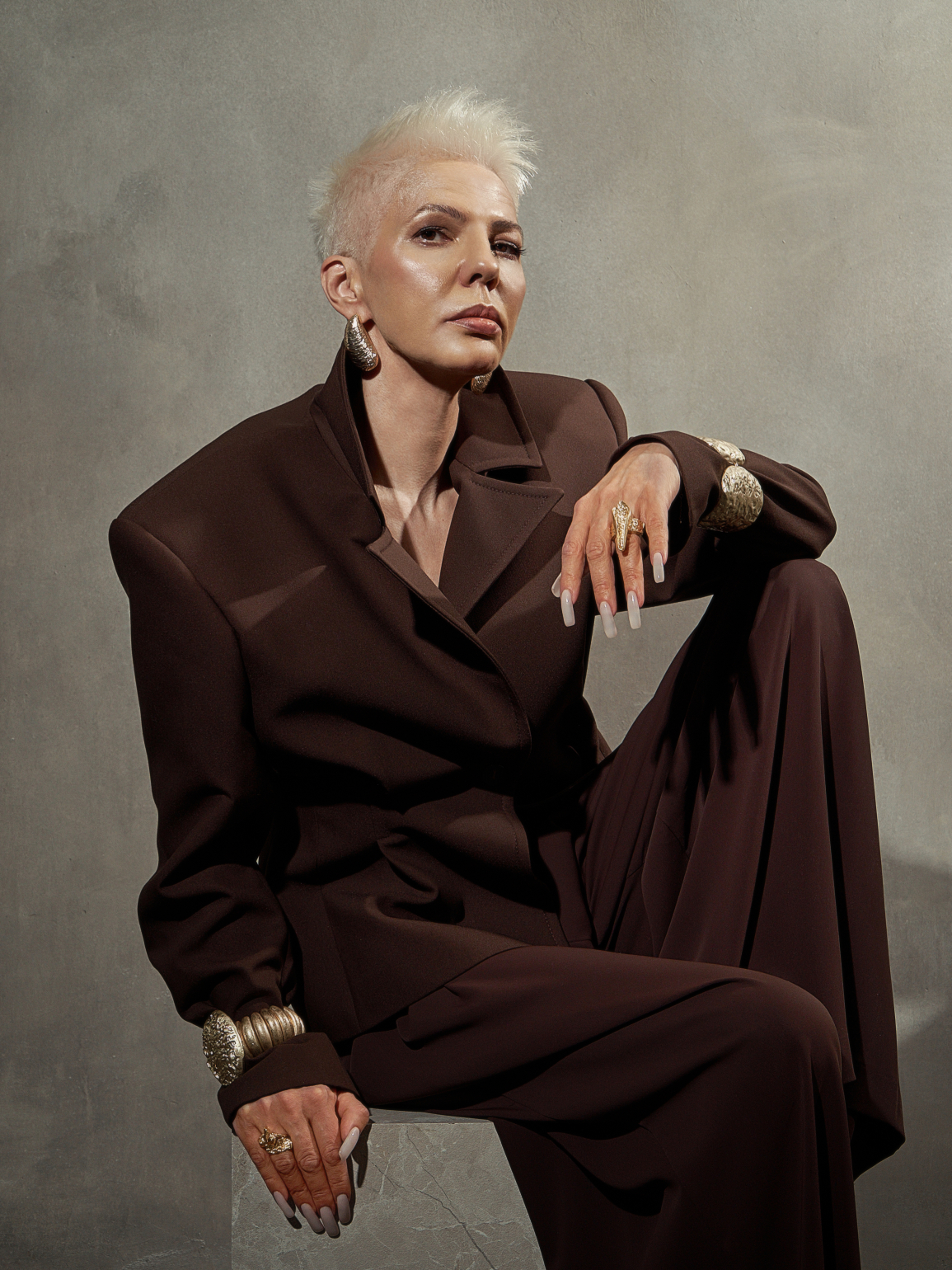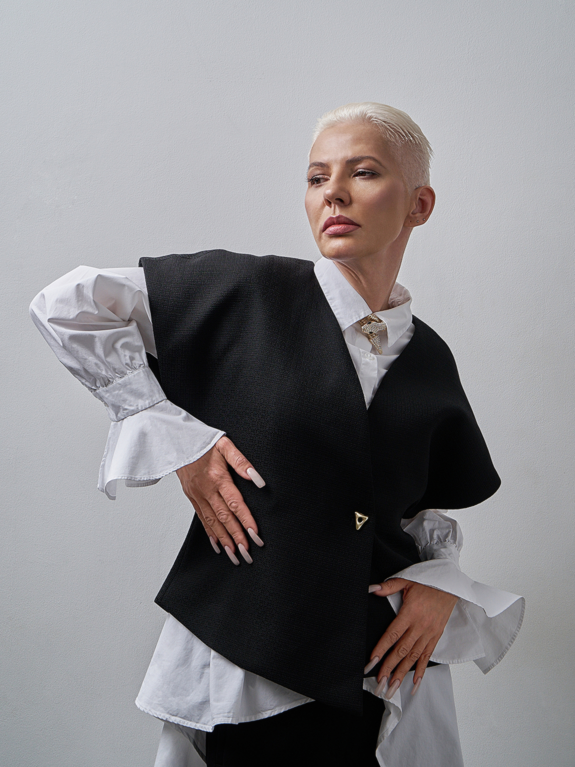 Her personal aesthetic (oversized silhouettes, clean lines, muted tones) offers another layer to her creative identity. It places her within a global conversation that has redefined contemporary femininity. The rise of androgynous tailoring, the return of structured minimalism, and the renewed focus on longevity in fashion all echo through her choices. For Skoral, this aesthetic is less about trend and more about autonomy. She gravitates toward pieces “borrowed” from menswear because they signal freedom: freedom to say no, to set boundaries, to resist being placed into overly ornamental molds. “Your outfit influences how people perceive you,” she notes. “If you’re dressed in something pink and whimsical, your words will also be interpreted through that playful lens.”