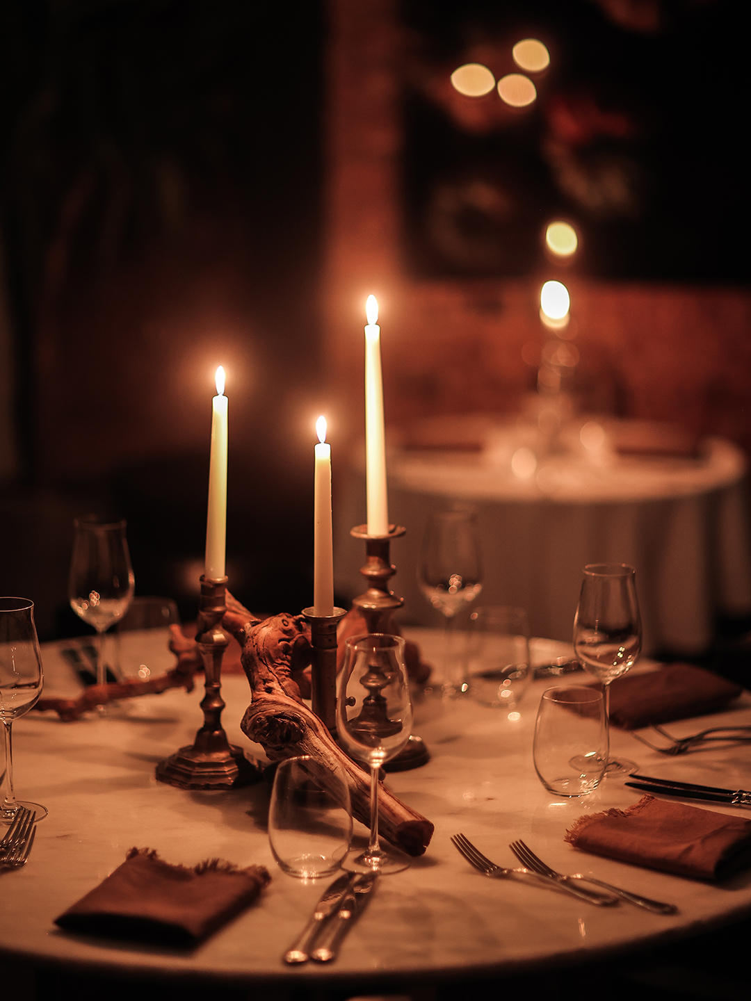 Mekan abartıdan uzak ama güçlü bir atmosfer sunuyor. Kristal avize, doğal dokular ve ince düşünülmüş masa detayları, Beyoğlu’nun bohem ruhuna uyum sağlıyor. Her bir unsurda kontrol ve bilinç hakim; yemeğin önüne geçmeden deneyimi tamamlıyorlar.