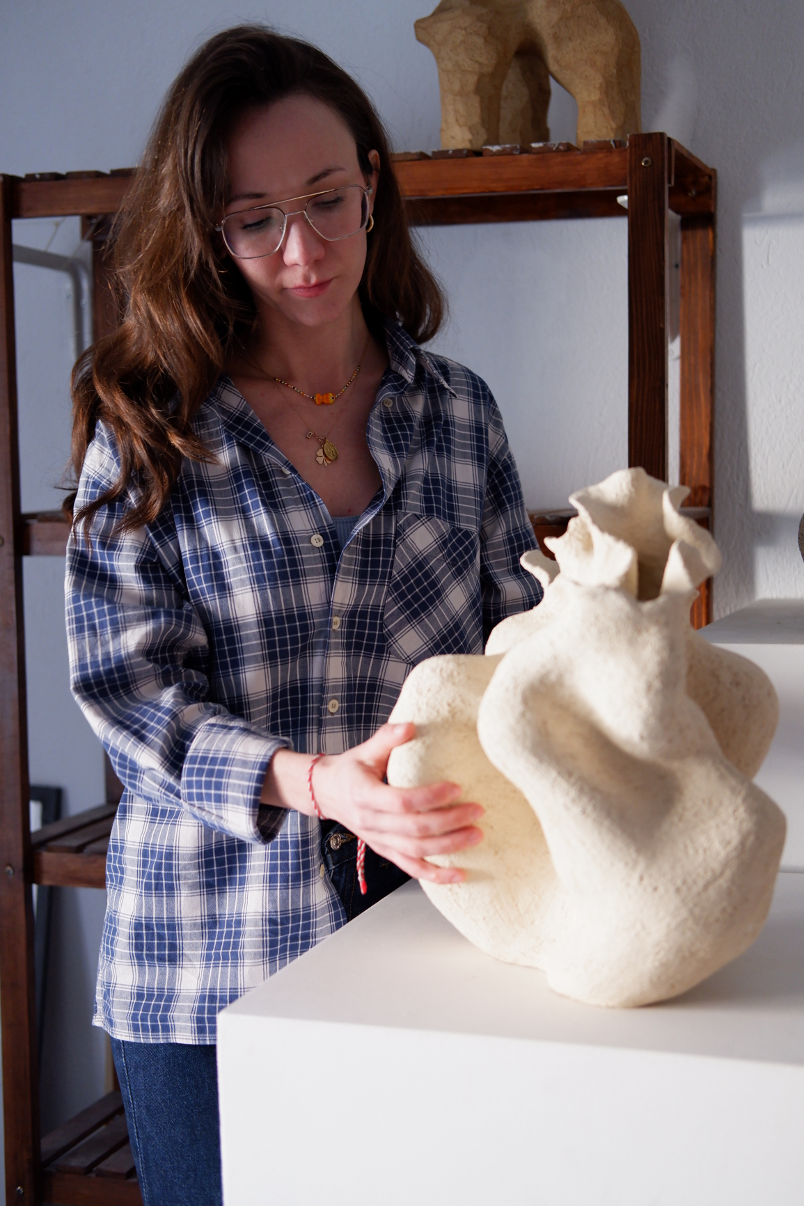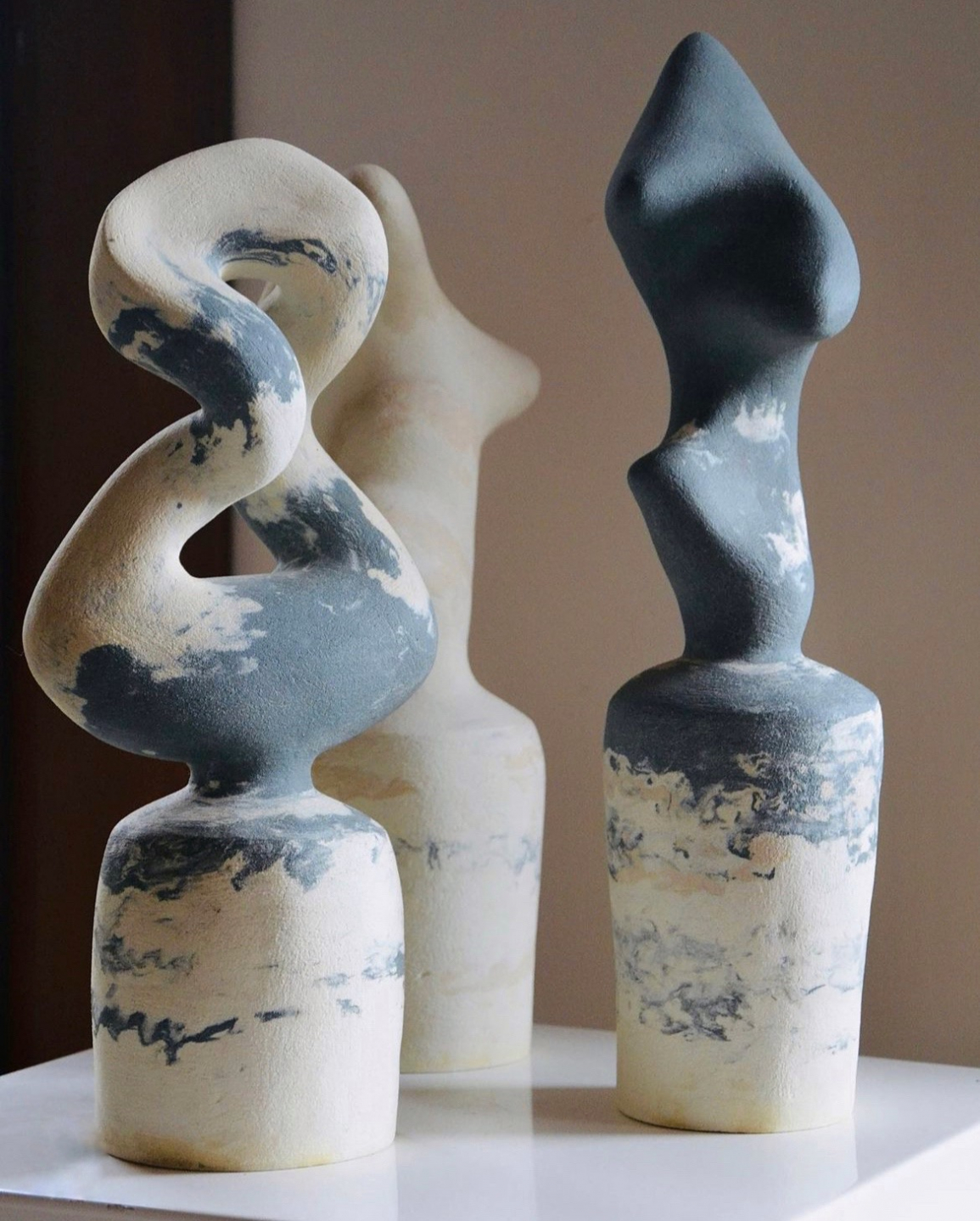 Projede yer alan işlerim, yıllardır üzerinde çalıştığım Pedestal heykel serisinden. Bu seri, çeşitli estetik biçimleri keşfetme arayışımdan doğdu. Her eser elde şekillendiriliyor ve stoneware çamurunda orta derecede pişiriliyor. Denge, gerilim, negatif alan ve hareket üzerine kurulu, biyomorfik heykellerden oluşuyor.