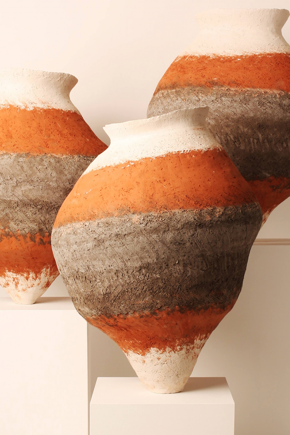 Seramik fırınından işler çıkmaya başladığında, dokusu, ağırlığı ve tek bir malzemeyle yarattığı o çarpıcı etki sayesinde tasarımlarımın duygusunu ve karakterini en heybetli hâliyle taşıyabildiğini fark ettim. Sanki işlerimin aradığı ifade zemini buydu. Pek çok parça fırından kırık çıksa da malzemenin gücü ve karakteri beni hiç şüpheye düşürmedi. Tüm kusurlarıyla birlikte tereddütsüz bu malzemeyle yoluma devam etmek istedim.