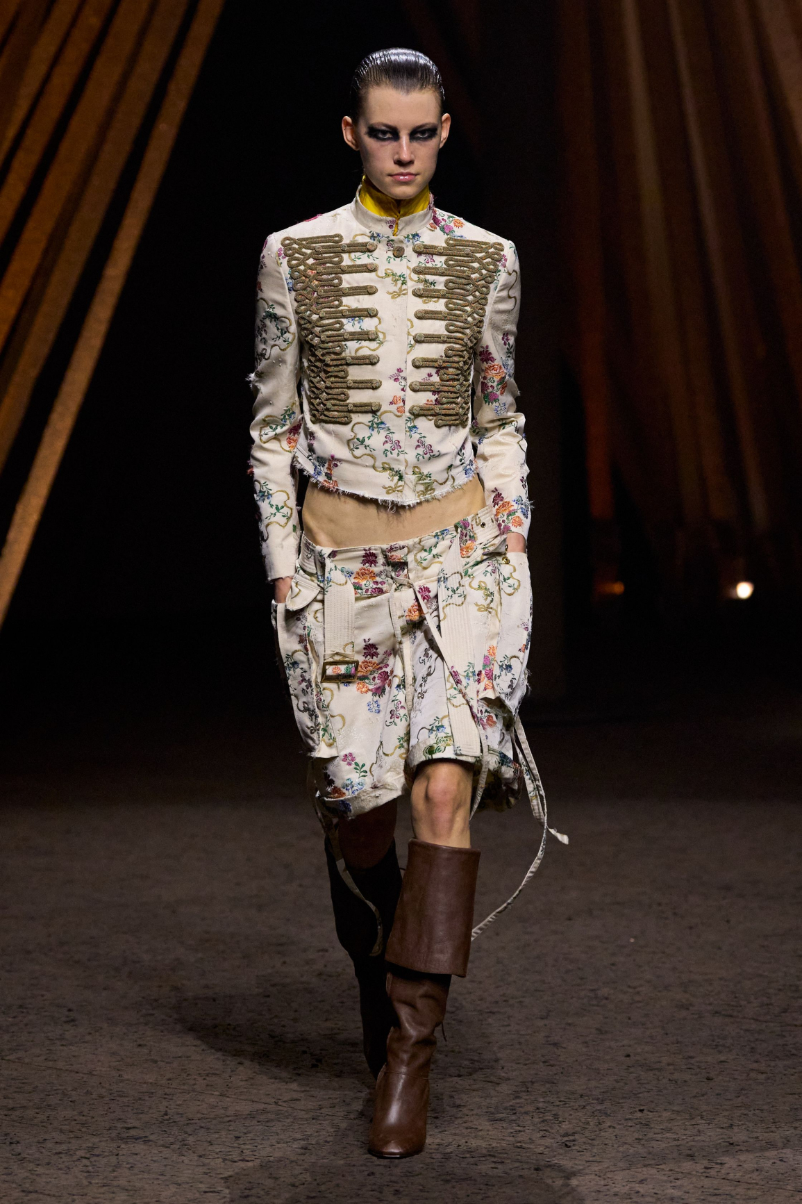Belirgin omuzları, metal düğmeleri, apoletleri ve işlemeleriyle tanınan askeri ceket, 2000’li yıllarda modellerin ve trendseverlerin vazgeçilmeziydi. O dönemde dar kot pantolonlar, büyük güneş gözlükleri ve özgüvenli bir duruşla tamamlanan bu siluet, bugün daha rahat ve teatral bir yorum kazanmış durumda.