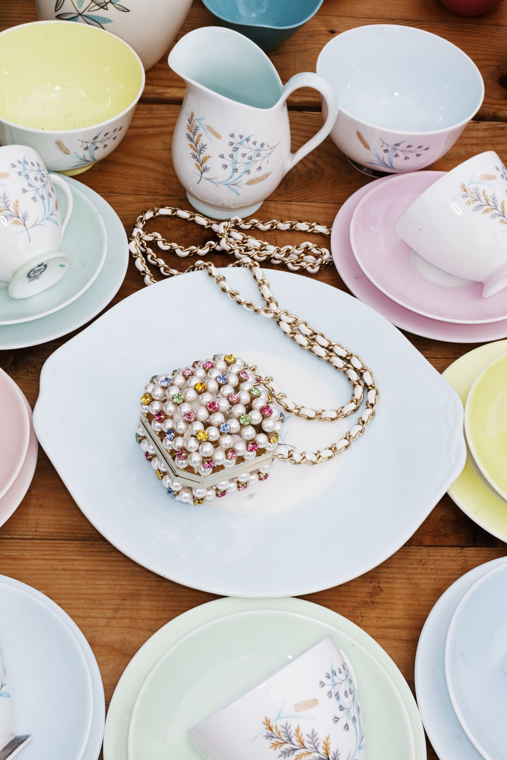 Parlak inciler ve renkli taşlarla süslenen zarif küçük Chanelçanta tatlı için en ideal seçenek.