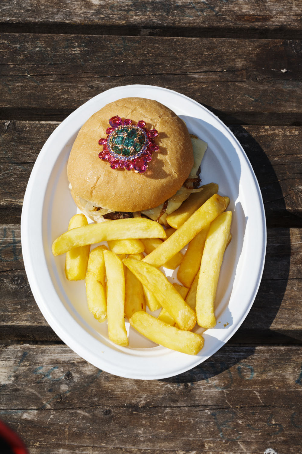 Renkli taşlarla hazırlanan Swarovskibroş antik fuar turunda tüm ihtişamıyla öğle yemeğimize eşlik ediyor.