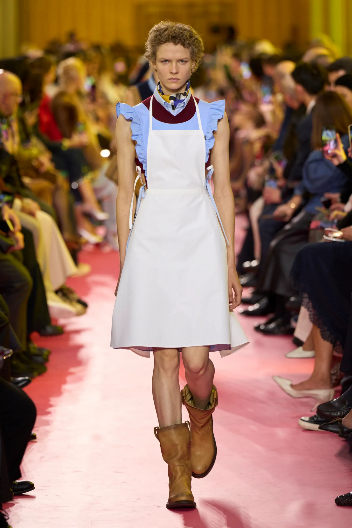 Moda tarihsel olarak iş kıyafetlerini romantize etmeyi sever. Ancak şimdilerde mesele estetikten öte güce bağlı bir tez sunmak ve önlüklerin kullanımını genişletmek. Zira podyumda yer alan önlükler, mutfağa dönüş çağrısı değil. Aksine, imgeyi kamusal alana, podyuma, kırmızı halıya taşıma eylemi. Eğer bugün önlük artık sadece mutfağa ait değilse, bu onun geçmişinin inkar edildiği anlamına da gelmiyor; bilakis, o geçmişin bilinçli şekilde yorumlandığını gösteriyor. Kim bilir belki işin içine biraz da ironi girmiştir.