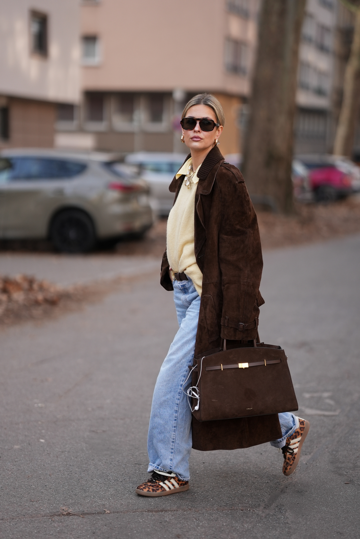 Günlük klasik parçalarınızı çikolata kahverengisiyle güncelleyin. Polo yaka bir üstü, desenli bir kaban ve süet babetlerle eşleştirin. Beyaz çorap ve bol paça denim ise işin en cool tarafı.