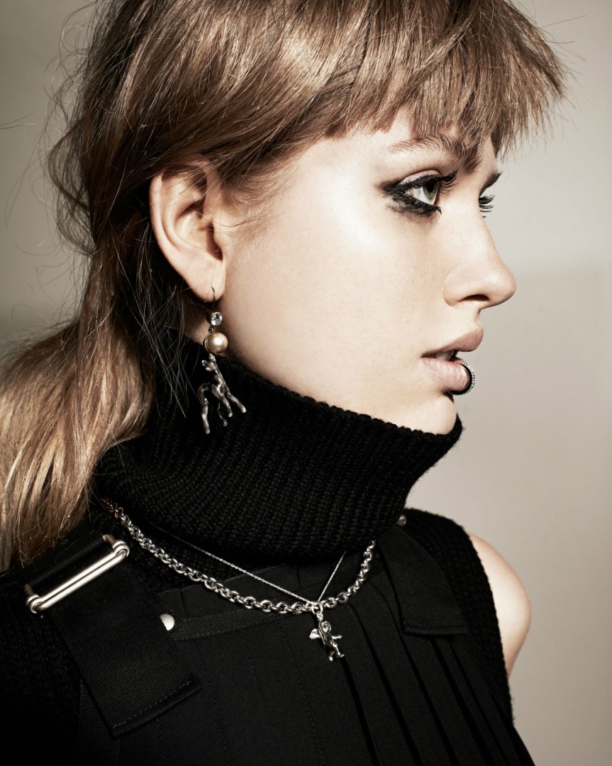 Sade balıkçı yakaları zenginleştirmenin tek kuralı; tak takıştır. Üst üste binmiş zincir kolyeler, iri ve geometrik formlu küpeler sert duruş sınıfına giriyor. Maskülen tavrı ile piercing, zarif inciler ve pırlantalarla tatlı bir rekabette.